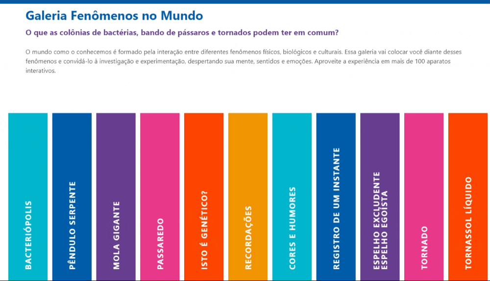 Descrição: Fragmento de exibição de informações com uma seção sobre Galeria Fenômenos no Mundo